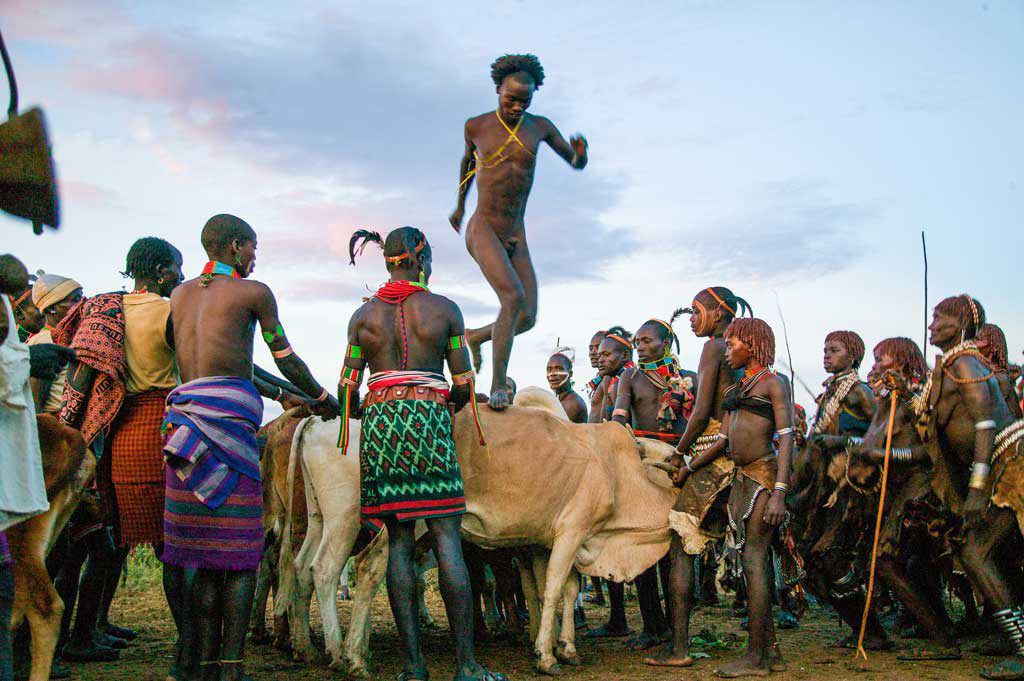 From Turmei, you will visit a village of the Dassanech people. The Dassanech tribe, living around Omerate, is not strictly defined by ethnicity but has absorbed a wide range of different people over time. The Dassanech are divided into eight main clans, each of which is believed to have special powers over different things such as water, crocodiles, snakes, diseases, drought, eye infections, scorpion bites and muscular problems. Members of the same clan are forbidden from marrying (or even dancing with) each other. Both men an women of the Dassanech adorn themselves with beads and bracelets. In the afternoon, you may be lucky enough to see a Hamar Bull-jumping ceremony, or visit the Hamar village if you saw the bull-jumping ceremony on the previous day. At the end of the day, you’ll return to Turmei, where you’ll spend a second night.